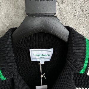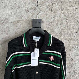 Black Casablanca Men's Crochet Tennis Shirt Jacket