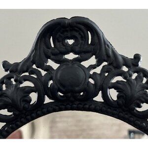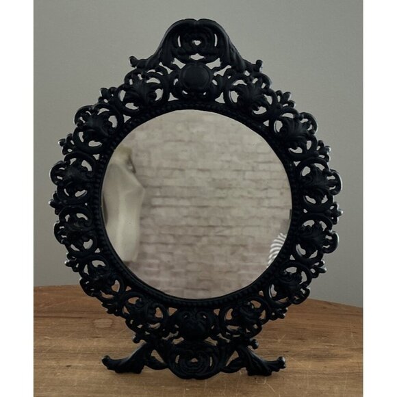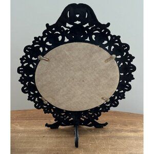 Black Cast Iron Easel Mirror Round Freestanding Tabletop Dresser Vintage
