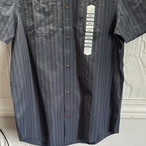 This black casual button down shirt features a contemporary design with subtle vertical stripes, offering a stylish and versatile look. Made from a comfortable cotton blend, it is perfect for everyday wear.