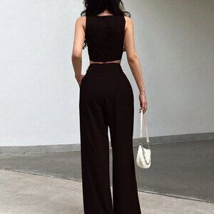 Black Casual Women's Asymmetric Hem Sweetheart Neck Sleeveless Top & Pants Set