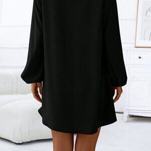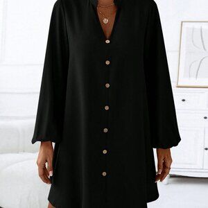 Black Casual Women's Button Front Lantern Sleeve Dress