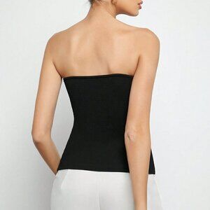 Black Casual Women's Button Front Split Hem Bandeau Top