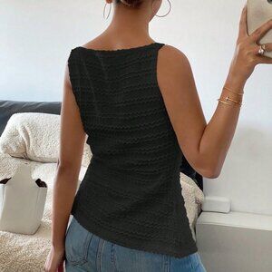 Black Casual Women's Buttoned Front Sleeveless Minimalist Blouse