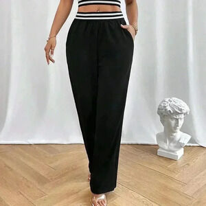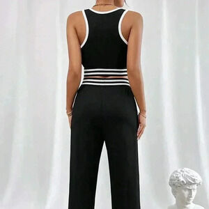 Black Casual Women's Contrast Binding Crop Tank Top & Pants