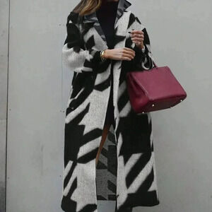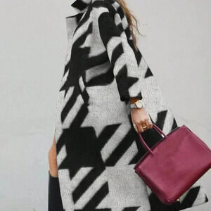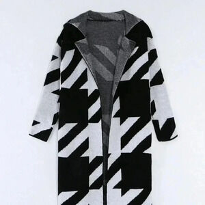 Black Casual Women's Contrast Color Long Sleeve Printed Knit Cardigan