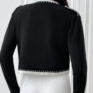 Black Casual Womens Contrast Trim Open Front Cardigan