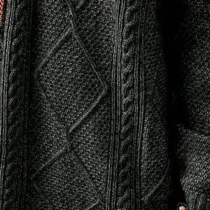 Black Casual Women's Cozy Cable Knit Drop Shoulder Loose Fit Sweater Dress