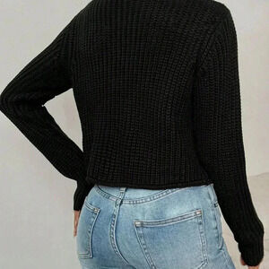 Black Casual Women's Crew Neck Front Button Up Long Sleeve Cardigan