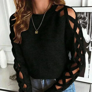 Black Casual Womens Cut Out Raglan Sleeve Crisscross Sweater