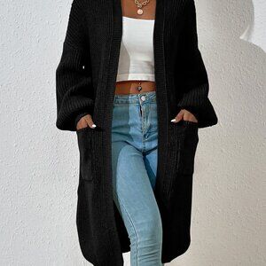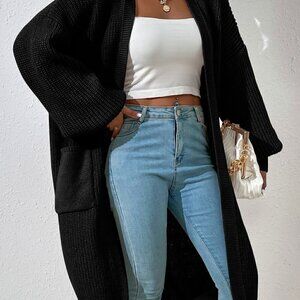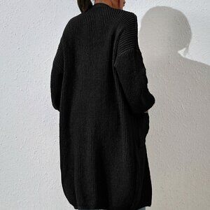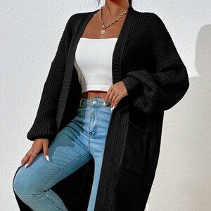 Black Casual Women's Dual Pocket Drop Shoulder Cardigan