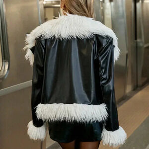 Black Casual Women's Fluffy Splice Color Block Long Sleeve Regular Jacket