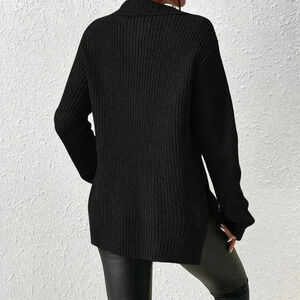 Black Casual Women's Half Zip Drop Shoulder Grain Sweater
