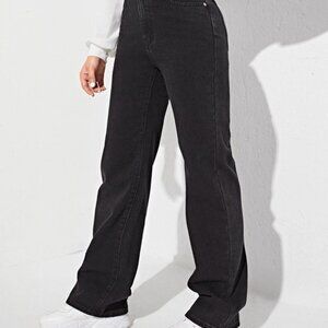 Black Casual Womens High Waist Patched Detail Wide Leg Pants