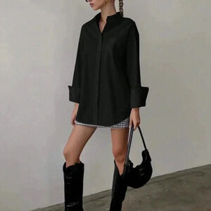 Black Casual Women's Loose Long Sleeved Shirt