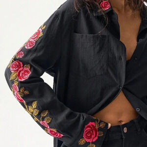 Black Casual Women's Loose Woven Asymmetrical Hem Long Sleeve Long Shirt