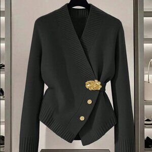 Black Casual Women's Metal Button Asymmetrical Cardigan Sweater