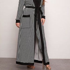 Black Casual Womens Patch Pocket Belted Houndstooth Coat & Leggings Set