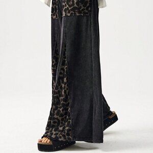 Elevate your late fall style with these casual knit pants. Featuring a unique patchwork leopard print design, these long, wide-leg pants offer a loose fit for ultimate comfort. Perfect for everyday wear, they bring a touch of wild elegance to your wardrobe.