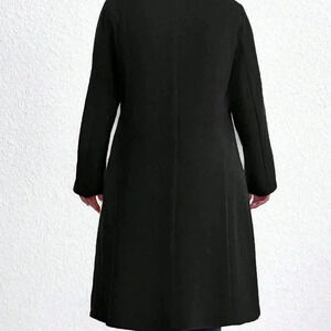 Black Casual Women's Plus Size Plain Double Breasted Pocket Long Sleeve Overcoat