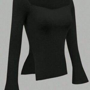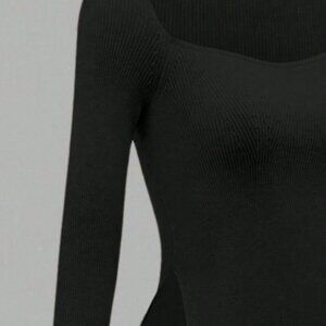 Black Casual Women's Ribbed Knit Top