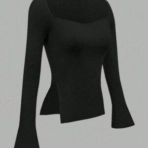Black Casual Women's Ribbed Knit Top