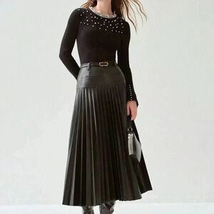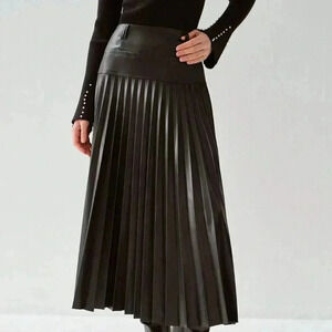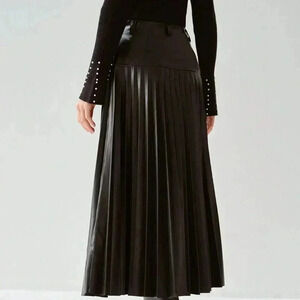 Black Casual Women's Romantic Black Pleated PU Skirt