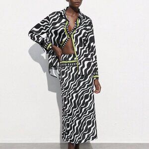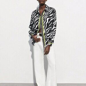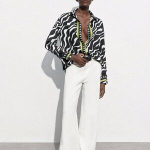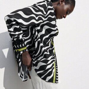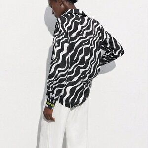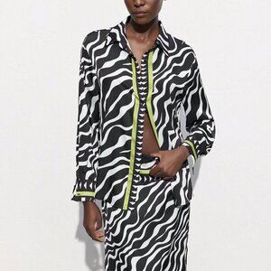 Black Casual Women's Round Neck Long Sleeve Zebra Print Shirt