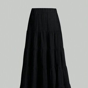 Black Casual Women's Solid Color A-Line Loose Skirt