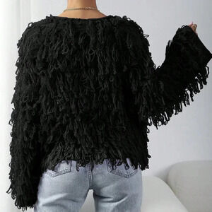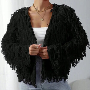 Black Casual Women's Solid Color Coil Knitted Cardigan