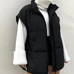 Black Casual Women's Stand Collar Sleeveless Quilted puffer Vest Jacket