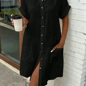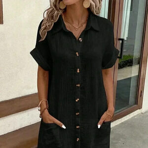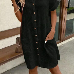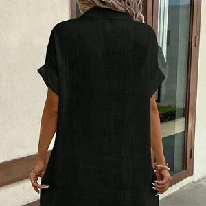 Black Casual Women's Summer Solid Color Bat Wing Sleeve Shirtbaggy Pants Dress
