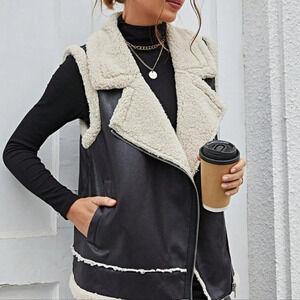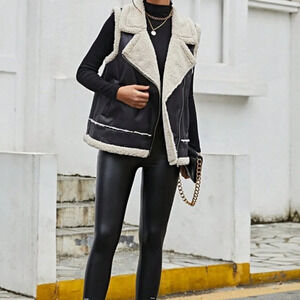 Black Casual Women's Teddy Lined Zip Up Vest Jacket