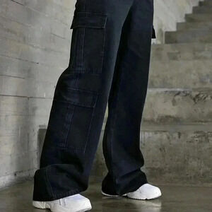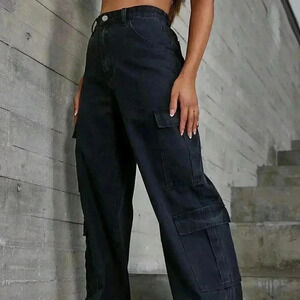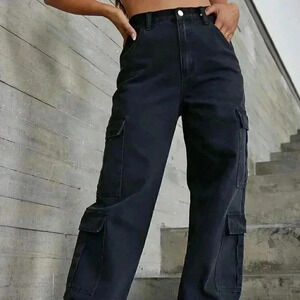 Black Casual Womens Zipper Fly Flap Pocket Boyfriend Jeans