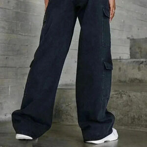 Black Casual Womens Zipper Fly Flap Pocket Boyfriend Jeans