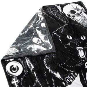New with tags! Ward off bad luck on the chilliest of nights with our Black Cat 13 Throw Blanket, the purr-fect comfort item for your haunted home decor. Soft as a spider's web and gorgeously gothic with its black cat and spooky illustrations, this premium plush throw is 100% polyester for a silky-soft feel and ultimate warmth. Measures 50 inches x 60 inches and is a must-have for the modern goth home.. Designed in California. Last 2 pics shows all the blankets I have in other listings!
