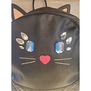 Black Cat Backpack With Gem Accents & Quilted Bottom