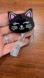 Cute black cat keychain badge reel with pink accents. Perfect for cat lovers. Has a durable alligator clip.