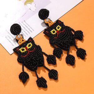 Black Cat Beaded Halloween Dangle Leg Pet Lovers Witch Theme Earrings