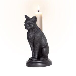 Black Cat Candle Holder Alchemy Gothic Faust's Familiar Candlestick Holder