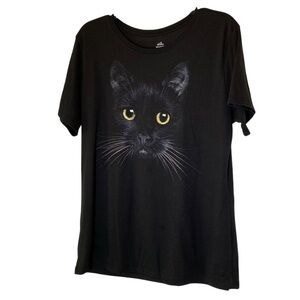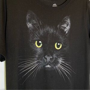 Black Cat Face Women's size Large (12-14) Short sleeve T-Shirt Clothing