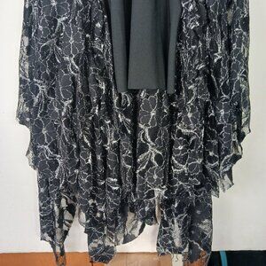 Black Cat Fashion Silk Blend Metallic Lace Midi Dress L Grunge