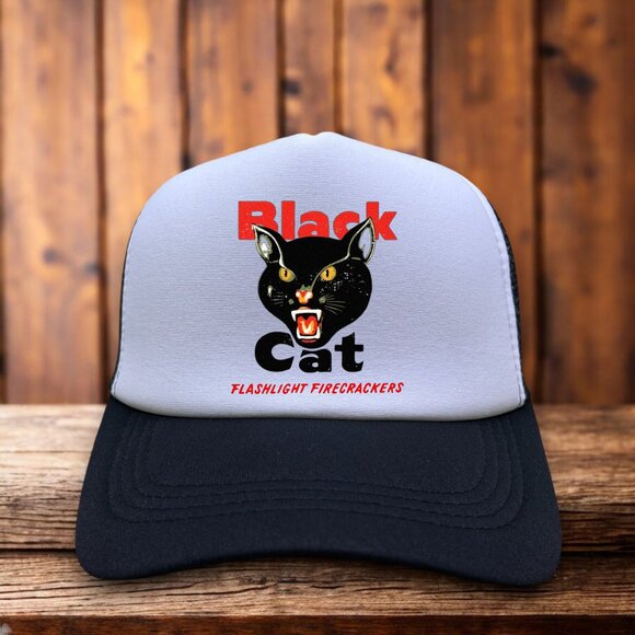 Black Cat Fireworks Vintage Logo Mens Trucker Hat Black The Best You Can Get