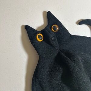 Tommy Art by Grandoe Black Fleece cat silhouette knit hat with acrylic eyes and nose with tail feature. Size: Adult M/L. See measurement in pics. Condition: Good/Used. Smoke-free pet friendly home. Questions? I will respond ASAP. Make me an offer!