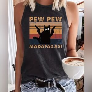 Black Cat Graphic "Pew Pew Madafakas" Tank Top Dark Gray Size XXL