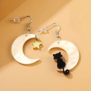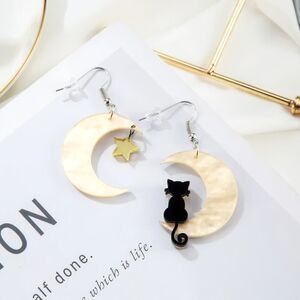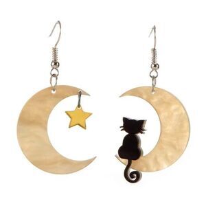 Black Cat Yellow Crescent Moon Acrylic Earrings with Gold Star