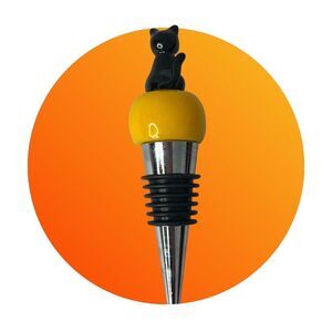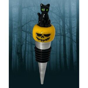 Black Cat and Jack-o-Lantern Halloween Wine Bottle Stopper Decoration