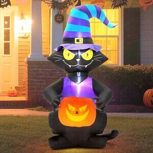 Black Cat with Witch Hat Halloween Blow Up Inflatable Decoration with LED Light