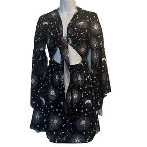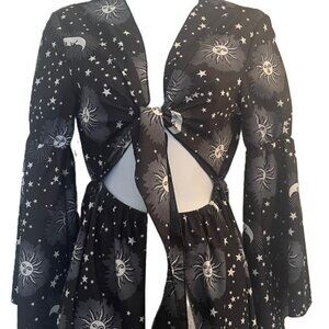 Black Celestial Moon, Sun and Stars Cut-Out Dress, Small