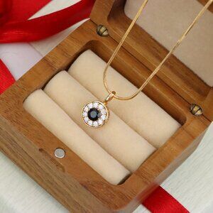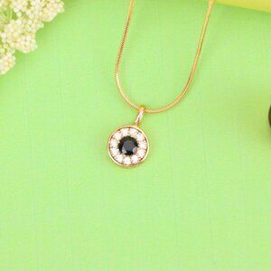 "Black Center Round Pendant in Rose Gold with Crystal Halo, XPPT1595