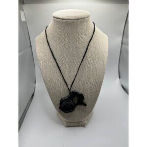This black ceramic pendant necklace features an artistic design and is strung on a durable knotted cord. Its minimalist style adds a sophisticated touch to both casual and formal attire. The adjustable length ensures a versatile fit, making it suitable for various looks and preferences.